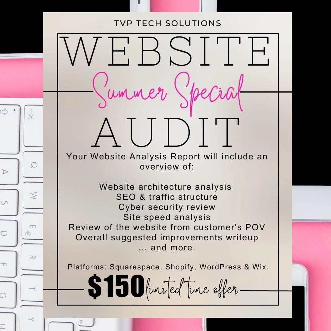 Resources Website Audit $150.00 TVP Tech Solutions Gift Card from $25.00 The Ready To Launch Checklist & Business Planner Sale Price: $1.00 Original Price: $20.00 Sale